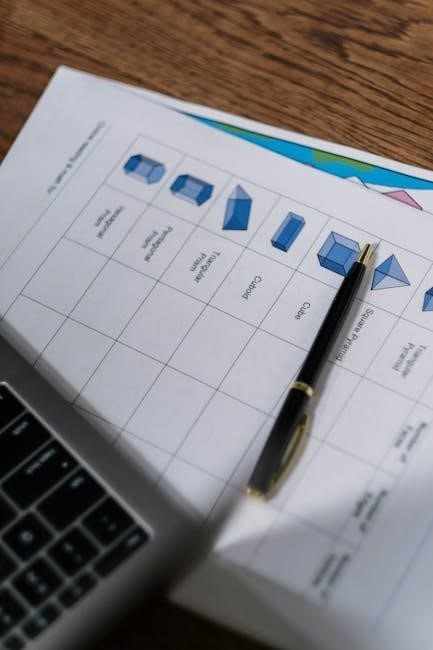 Visual aids are invaluable for mastering polynomial multiplication, especially for beginners. Tools like area models, distributive property diagrams, and graphs help students visualize how terms interact during multiplication. These aids break down complex processes into manageable steps, making abstract concepts more tangible. For example, using an area model resembles calculating the area of a rectangle, providing a concrete analogy for multiplying polynomials. Additionally, highlighting terms with different colors or using numbered steps can enhance clarity. Worksheets often incorporate these visuals, making them essential for structured learning. By leveraging visual aids, students can build a stronger foundation and reduce errors, fostering a deeper understanding of polynomial multiplication.